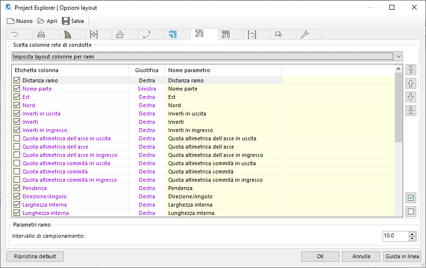 - Nella scheda Reti di condotte della finestra di dialogo Opzioni layout, verificare che sia selezionata l'opzione Imposta layout colonne per reti di condotte.