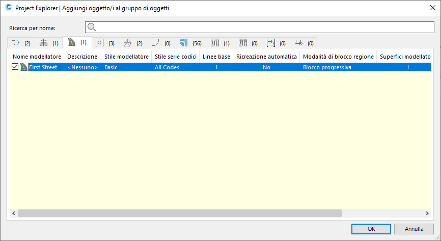 - Nella scheda Modellatori della finestra di dialogo risultante, selezionare il modellatore First Street e fare clic su OK.