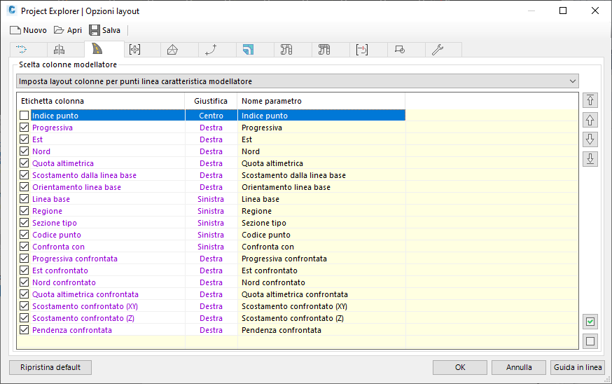 - Nella scheda Modellatori della finestra di dialogo Opzioni layout, accertarsi che sia selezionata l'opzione Imposta layout colonne per punti linea caratteristica modellatore.