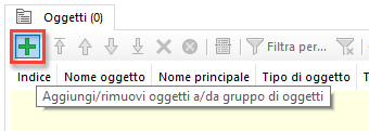 - Nella scheda Gruppi di oggetti della finestra Project Explorer principale, fare clic sul pulsante Aggiungi/rimuovi oggetti a/da gruppo di oggetti.