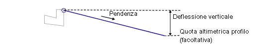 Può essere utilizzato sostituire il valore fisso Deflessione verticale e connettere la fine del collegamento ad un profilo Per la specificazione è possibile utilizzare i seguenti tipi di oggetto come obiettivi: profili, polilinee 3D, linee caratteristiche o figure di rilievo. |