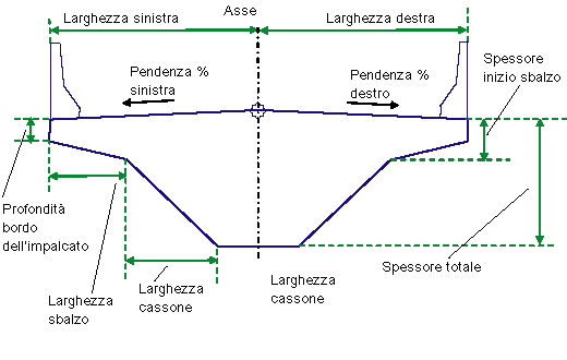 Il punto di associazione si trova in corrispondenza dell'asse sulla finitura dell'impalcato del ponte. La sezione del ponte è costruita sui lati sinistro e destro.