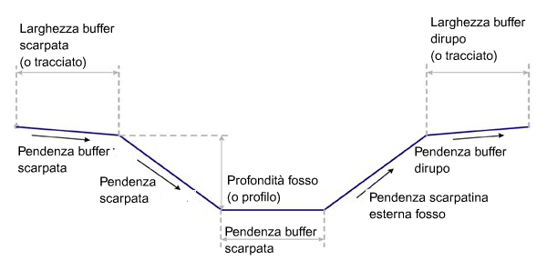 | Scarpata laterale esterna | Consente di inserire una scarpata laterale esternamente alla scarpatina del fosso (zero per omettere) | Numerico, positivo |