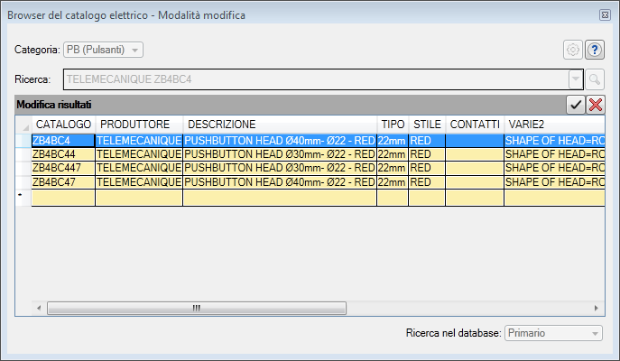 Inserire una parte dal database del catalogo elettrico o modificare il database del catalogo.