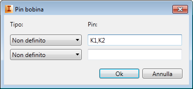 Fare clic per aprire la finestra di dialogo Pin bobina, in cui è possibile definire i pin per il simbolo principale.