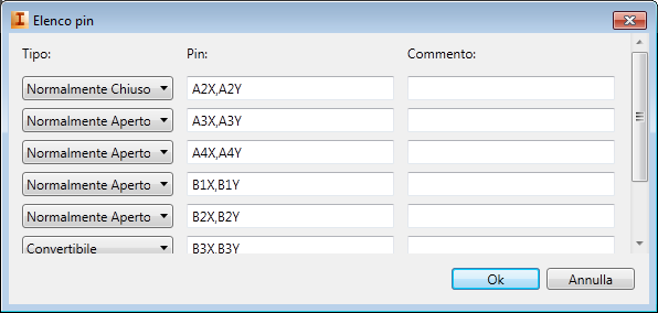 Nota: Le righe vengono aggiunte a mano a mano che si aggiungono i valori dei pin.