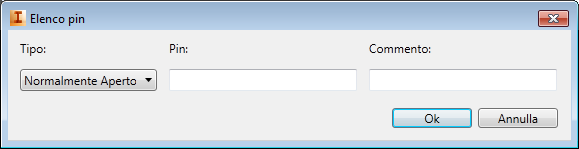 - Selezionare il tipo di pin dall'elenco visualizzato.