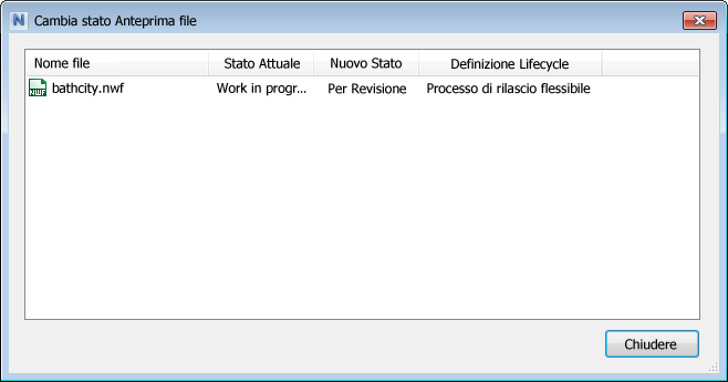 - Nella finestra di dialogo Modifica stato, fare clic sullo stato del ciclo di vita che si desidera applicare. Gli stati non consentiti a causa delle configurazioni di transizione non sono visualizzati.