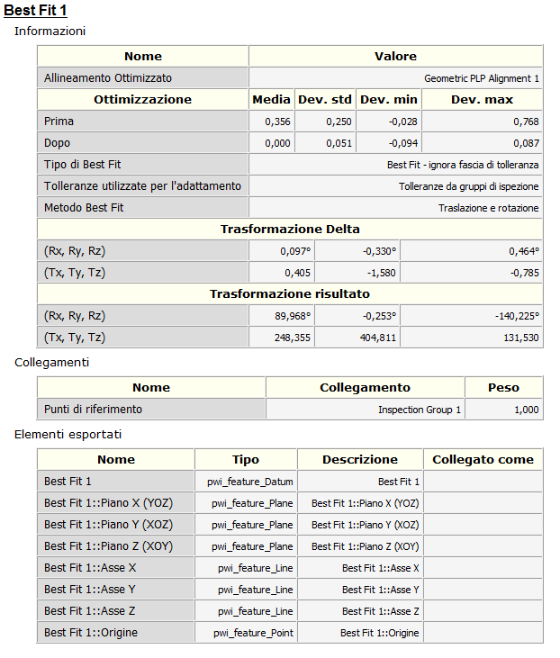- Fare clic con il tasto destro del mouse sull'elemento Best-fit nella sequenza di ispezione e selezionare Riproduci elemento nel menu contestuale. La finestra di dialogo Analizzatore Best-fit visualizza: