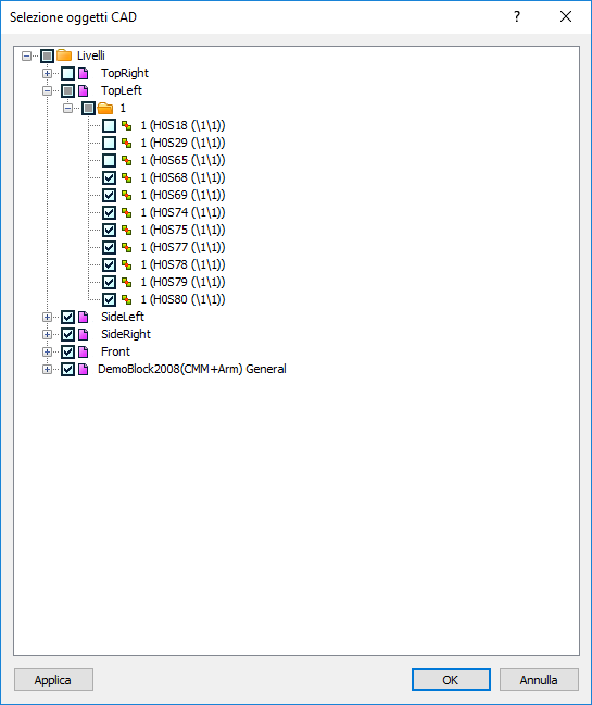 per espandere le cartelle e visualizzare il livello CAD e le voci dell'oggetto.