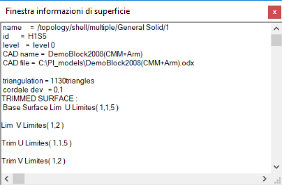 - Fare clic con il tasto destro del mouse sulla vista CAD e selezionare Visualizza informazioni di superficie nel menu contestuale. Viene visualizzata la Finestra informazioni di superficie.