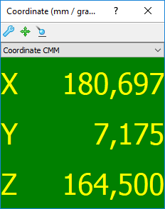La finestra di dialogo Coordinate comunica con il dispositivo di misurazione e visualizza la posizione della sonda mentre si sposta. Selezionare una voce dall'elenco Coordinate CMM per scegliere l'origine della coordinate.