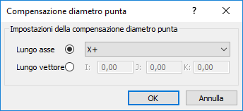 - Fare clic su OK per salvare le modifiche e chiudere la finestra di dialogo. Quando la casella di controllo Compensa coordinate punto di contatto è selezionata, le coordinate sono compensate automaticamente dal raggio della sonda nella direzione specificata.