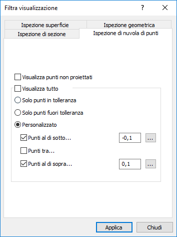 - Solo punti in tolleranza per visualizzare punti che sono all'interno della tolleranza.