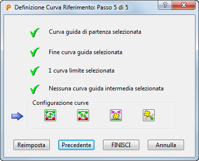 Ciclo della curva guida e limita curva — Passa ciclicamente le diverse combinazioni della curva guida e delle curve limite.