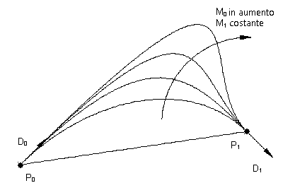 Tali punti di controllo definiscono anche le direzioni della tangente (D0 e D1) e le magnitudini della tangente (M0 e M1) presso i punti finali (P0 e P1).