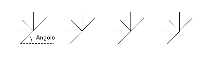 Allineato ad un angolo - Inclina il simbolo allangolo specificato relativamente allo spazio di lavoro corrente.