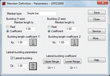 Use this dialog to define member type parameters for American Steel Codes: ASD:1989 Ed.9th, LRFD2000 and LRFD:1994 Ed.2nd.