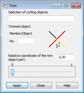- Selection of cutting objects field specifies the number of cutting objects. The position of these objects defines which parts of the members or objects can be trimmed.