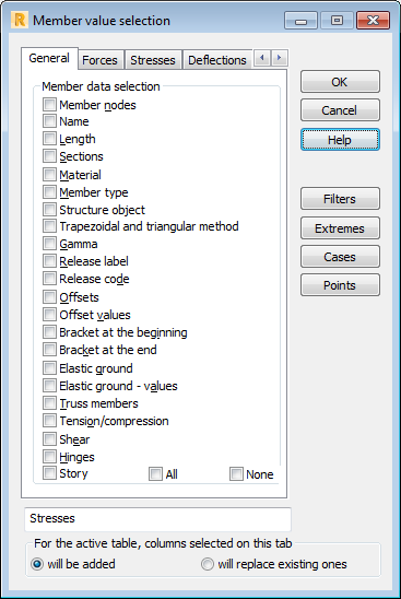 - Shear - members for which the impact of shear forces on structure deformation is considered.