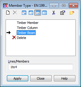 on the toolbar or select Design > Timber Members Design - Options > Code Parameters to select and/or define structure steel member types.
