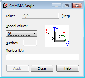 Open the GAMMA Angle dialog, which is used to change the position of a member section's local axes, using either method: