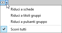 | specificare il metodo preferito per ridurre la barra multifunzione | a destra delle schede della barra multifunzione, fare clic sulla freccia a destra e selezionare l'opzione desiderata: Riduci a schede, Riduci a titoli gruppi, Riduci a pulsanti gruppi o Scorri tutti.