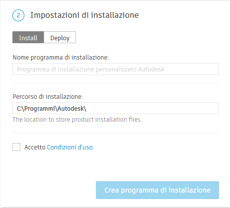 Il processo è identico a quello della creazione di un'installazione client. Per informazioni dettagliate sulla configurazione dell'installazione personalizzata, fare riferimento a Installazioni client di Revit.