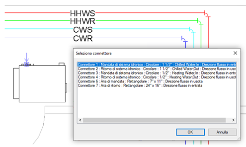 Collega - Condotto/Tubazione per aggiungere automaticamente un componente e creare tubazioni tra il nuovo componente e il sistema esistente.