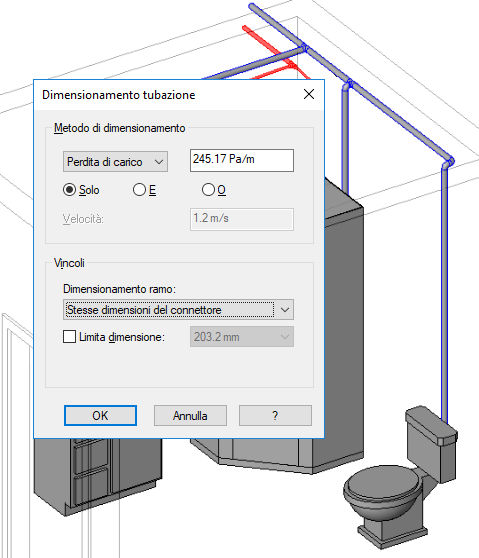 Le immagini seguenti mostrano i risultati dei vari metodi di dimensionamento di tubazioni.