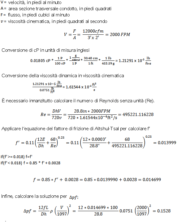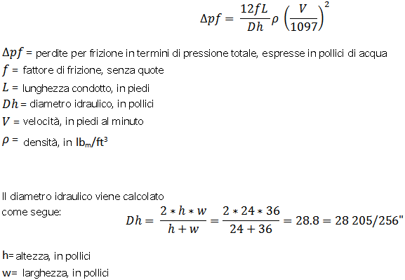La caduta di pressione è definita come segue:
