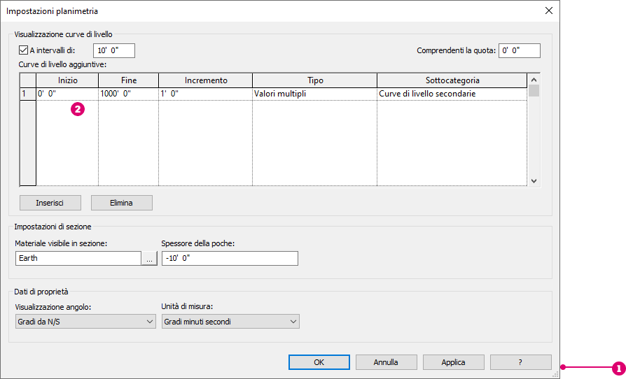 . Dopo aver aumentato le dimensioni della finestra di dialogo, è possibile modificare le impostazioni aggiuntive delle curve di livello