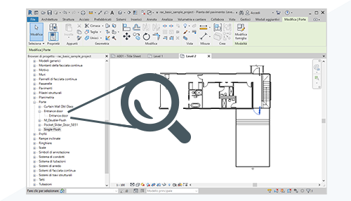 Selezionare gli elementi nel modello e fare clic con il pulsante destro del mouse per individuare l'elemento nel Browser di progetto. Se non è selezionato alcun elemento, la vista (o la tavola) attiva si trova nel Browser di progetto.