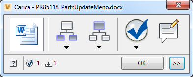 Vengono selezionati automaticamente tutti gli oggetti elencati nella finestra di dialogo Carica/estrai file o solo gli oggetti originali selezionati prima di aprire tale finestra di dialogo. Si tratta di una funzionalità utile se è abilitato il pulsante Includi elementi derivati, Includi elementi primari o Includi collegamenti e si desidera selezionare velocemente gli oggetti correlati per l'estrazione. Suggerimento: Passare il mouse sull'icona in qualsiasi momento per vedere le impostazioni correnti.