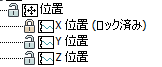 [X 位置](X Position)トラックのみがロックされ、[Y 位置](Y Position)および[Z 位置](Z Position)トラックはロックされていない状態
