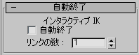 [自動終了](Auto Termination)ロールアウトのコントロールを使用して、選択されたオブジェクトから階層チェーンのリンクを特定の数だけさかのぼり、ターミネータを一時的に割り当てます。これは、インタラクティブ IK でのみ機能します。適用された IK および IK ソルバでは機能しません。