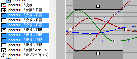 領域キー ツールを使用するには、編集するトラックを最初にハイライトし、[キー](Key)ウィンドウ領域までドラッグします。これにより、ハイライトされたトラックのすべてのキーがドラッグの幅で選択されます。次に、キーを移動して領域内へドラッグするか、キーをスケールし、領域境界にあるハンドルをドラッグします。