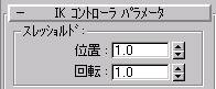 [インバース キネマティック](Inverse Kinematics)と共通です。エンド エフェクタとチェーンの最後のリンクの間にある位置と回転を変更するしきい値を設定します。