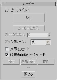 [設定の自動セーブ/ロード](AutoLoad/Save)チェック ボックスのチェックマークを消すと、トラッカーが空または既存の状態の別のムービー ファイルを開いたり、現在のトラッカー状態を新しいファイルに保存したりできます。現在のトラッカー ファイルの名前は、[ムービー](Movie)ロールアウトの下部に表示されます。