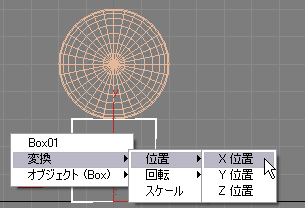 球オブジェクトはそのドライバであるボックス オブジェクトによって完全に制御されているため、移動することができません。同様に、ステータス バーの[座標表示](Coordinate Display)領域を使用して球オブジェクトの位置を変更することもできません。ただし、球オブジェクトの位置は、[リアクション マネージャ](Reaction Manager)の編集ツールを使用すると変更できます。