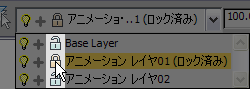ロック解除のアイコンに変わっているはずです。アニメーション レイヤ内のトラックのロックおよびロック解除は、そのレイヤでコントロールされるすべてのトラックに適用されます。
