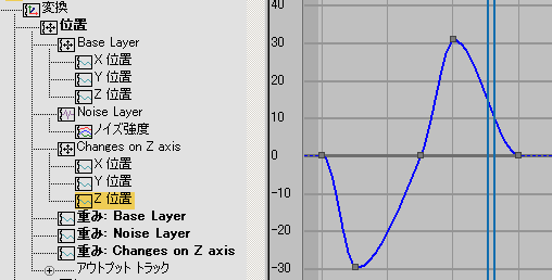 [位置](Position)の下位には、[Base Layer]、[Noise Layer]、2 つの[重み](Weight)トラック、[アウトプット](Output)が表示されます。