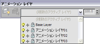 [アニメーションレイヤ]ツールバーのアニメーション レイヤ リストには次のように機能します。一般的なワークフローの例については、このトピックの後の「手順」のセクションを参照してください。