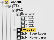 3ds Max はレイヤ コントローラを追加する際に、元のコントローラを最初のレイヤ(Base Layer と呼ばれる)にコピーし、既存のアニメーション データをすべて保持します。
