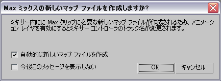 ただし、[OK]をクリックする前に[自動的に新しいマップ ファイルを作成](Automatically Create The New Map Files?)をオフにすると、マップ ファイルは生成されないため、次にシーン ファイルを開くときにマップ ファイルの作成を要求するプロンプトが表示されます。マップ ファイルなしでは、アニメーションは正しく表示されません。