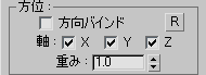 これらのいずれかにチェックマークが付いていない場合、指定された軸は従属オブジェクトまたは IK コントローラの位置エンド エフェクタの影響を受けません。