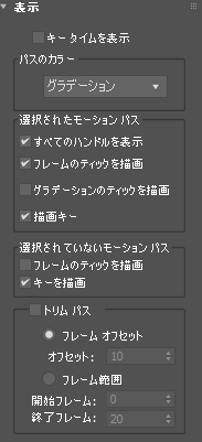 ヒント: モーション パスの表示方法をカスタマイズするには、[表示](Display)ロールアウトを使用します。