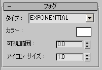 フォグの種類(LINEAR または EXPONENTIAL)を指定します。[LINEAR]を指定すると、混合の量は距離の線形関数となり、深さを示す効果をもたらします。[EXPONENTIAL]を指定すると、混合で指数の増加を使用できるので、より自然なフォグの効果をもたらします。