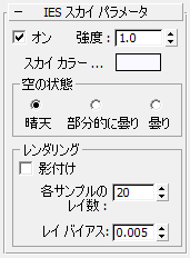 注: IES スカイ オブジェクトは、ActiveShade レンダリングでは影付けを行いません。
