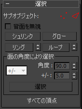 注: このロールアウトの各種コントロールは、編集可能ポリゴン オブジェクトの[選択]ロールアウトのコントロールと似ています。このセクションでは、これらのコントロールについて最小限の説明を行います。詳細については、「[選択]ロールアウト(ポリメッシュ)」を参照してください。